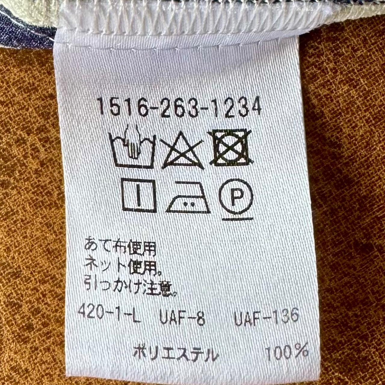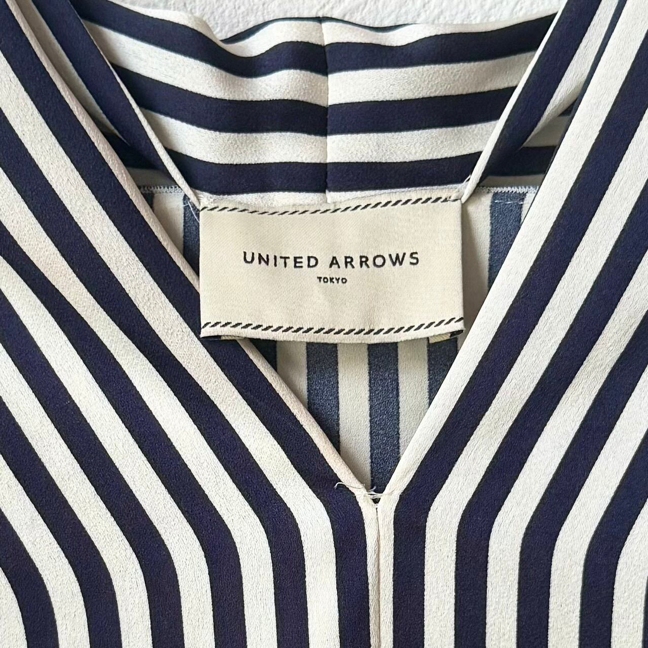 UNITED ARROWSのこのトップスは、ネイビーとホワイトのストライプが特徴で、シンプルながらも洗練された印象を与えます。